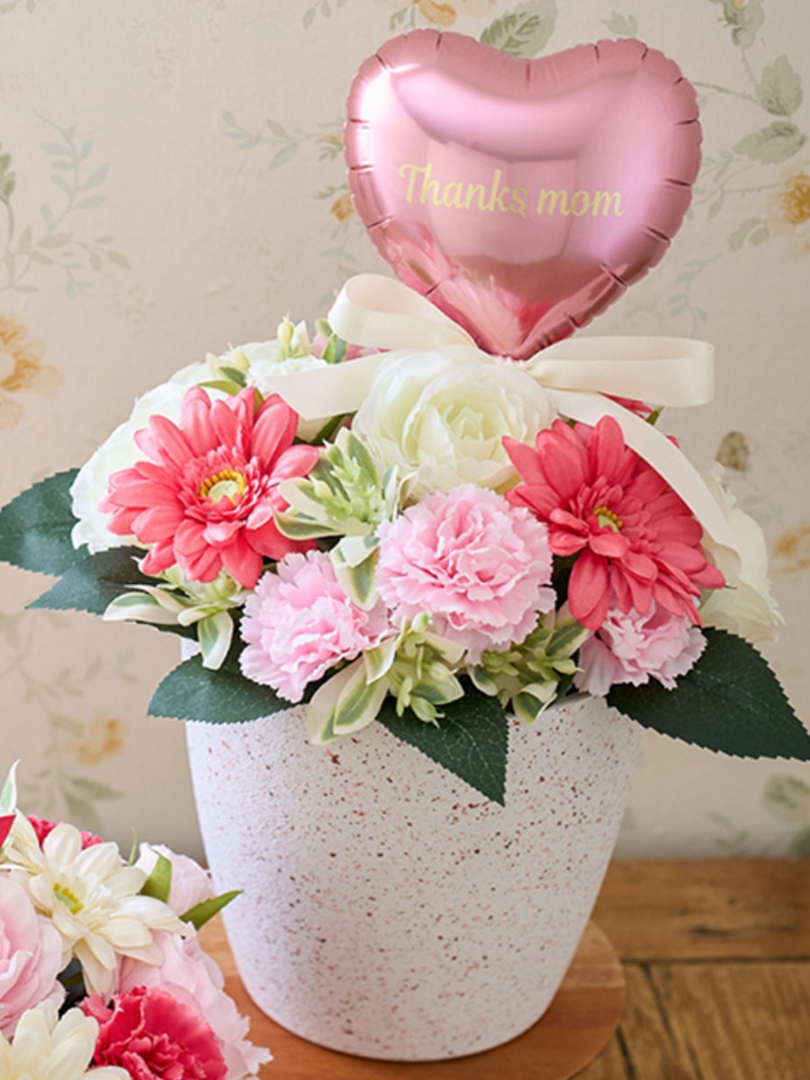 ピックにリボンを足したり、無地のバルーンピックに転写シールを貼ったりして、母の日ギフト仕様にしています。