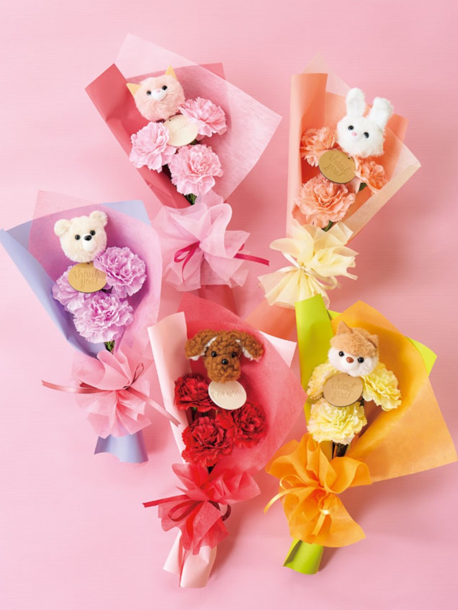 シンプルな花束もふわふわなフラッフィピックを合わせることで華やかにボリュームアップ。