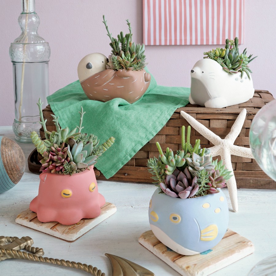 海の仲間モチーフのセメント製の鉢。