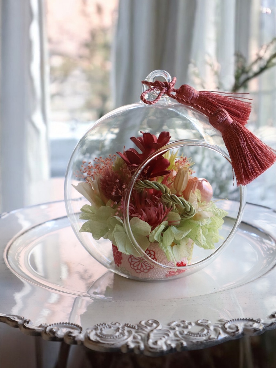 ドライフラワーで作るから柔らかい雰囲気になりました