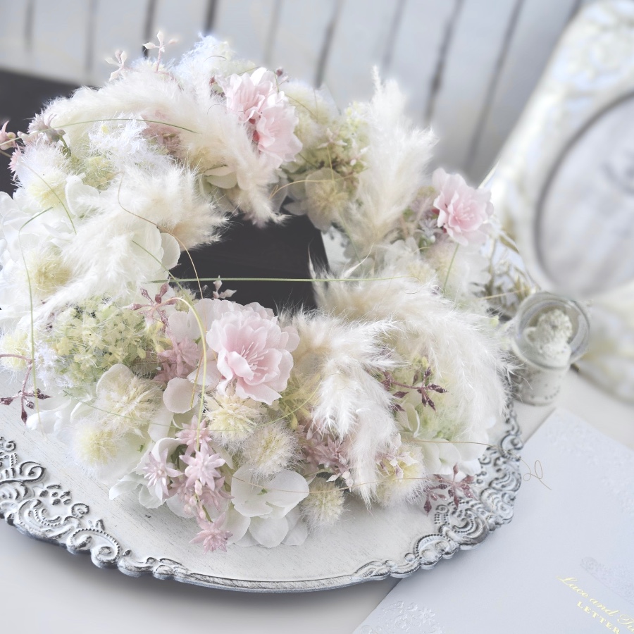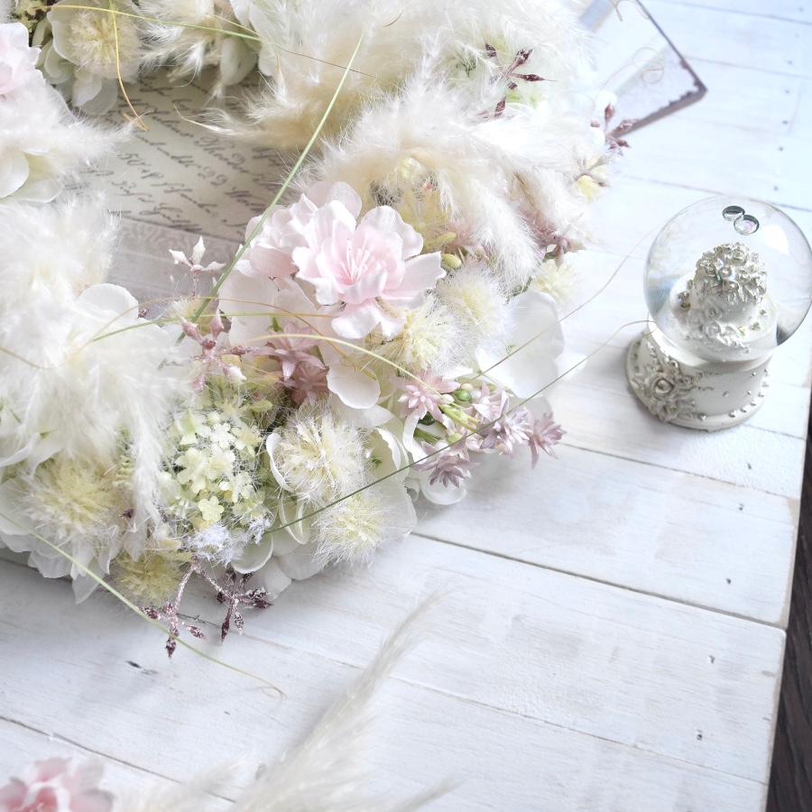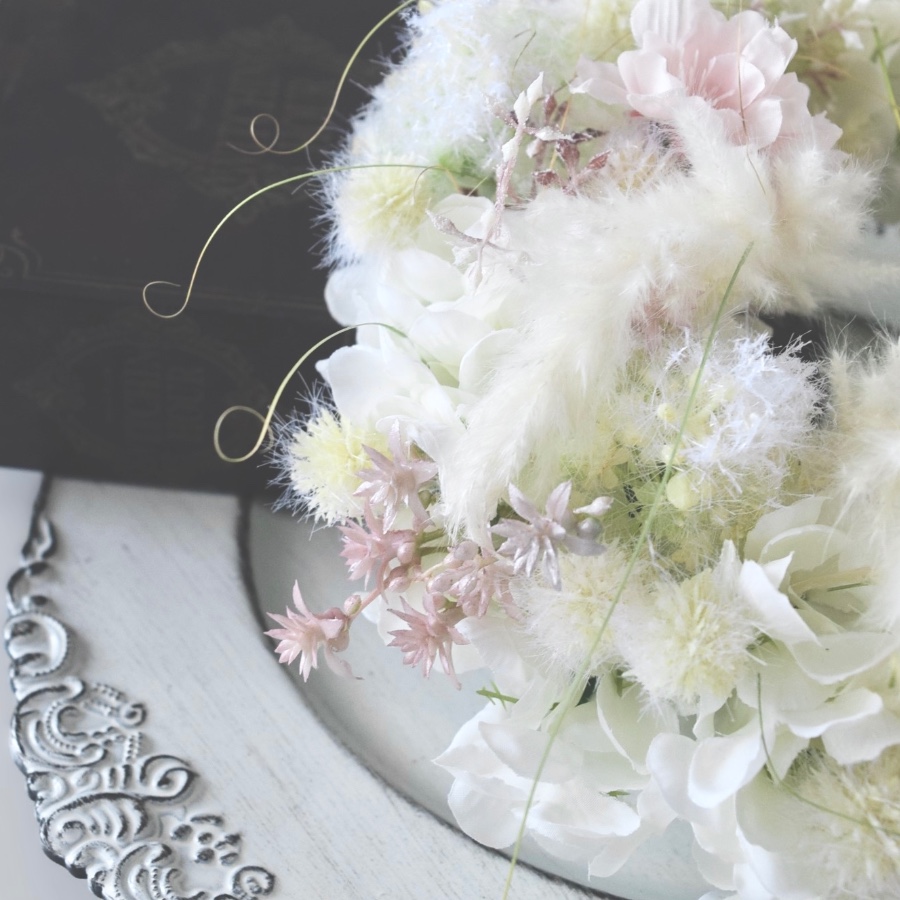 現在は、主にブライダルブーケ・リース・アレンジメントなどを制作・販売させていただいております。