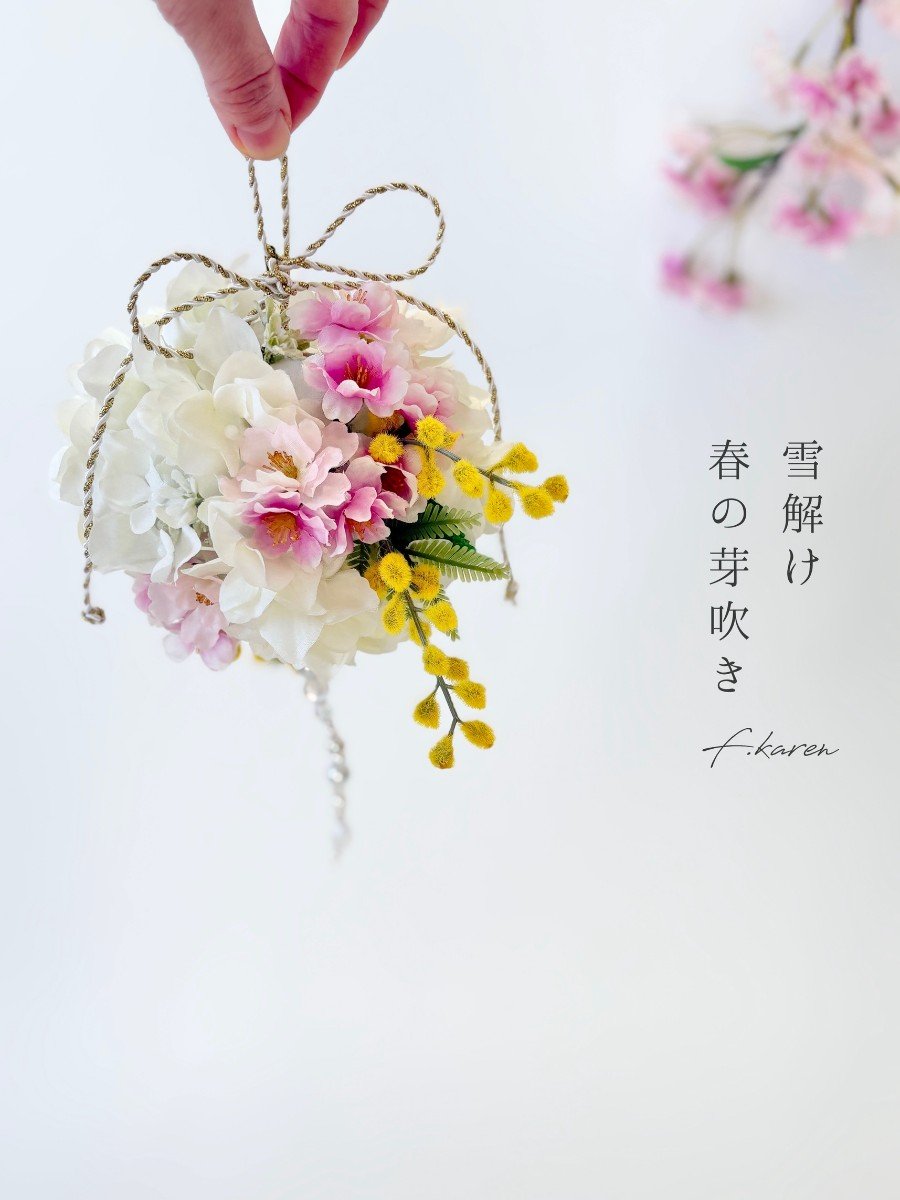 桜とミモザで、春のはじまりを表現しました。