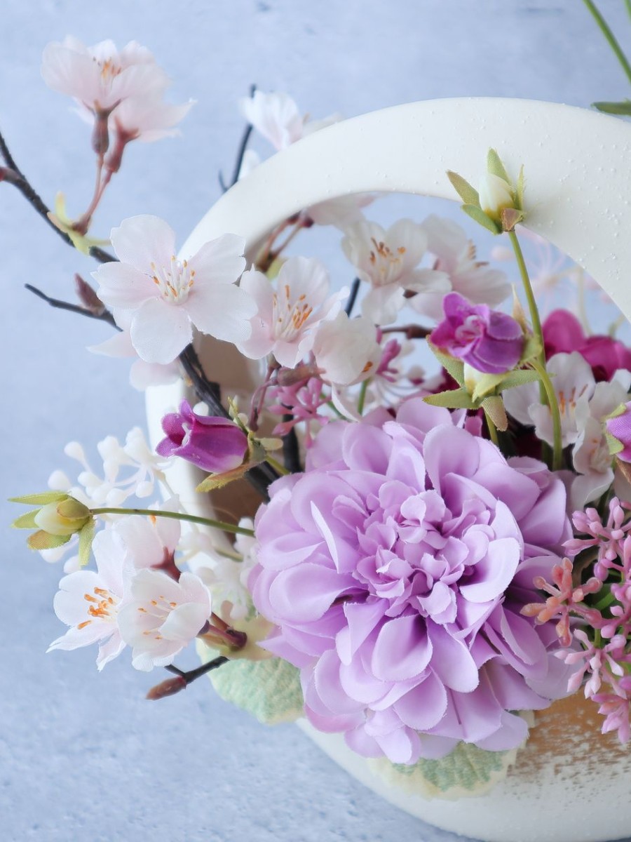 伸びやかな淡い桜に薄紫色のダリアを合わせたアレンジメントです