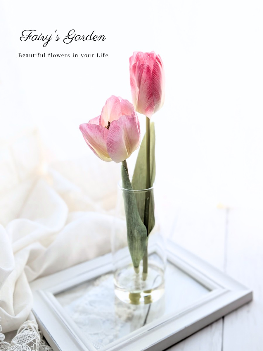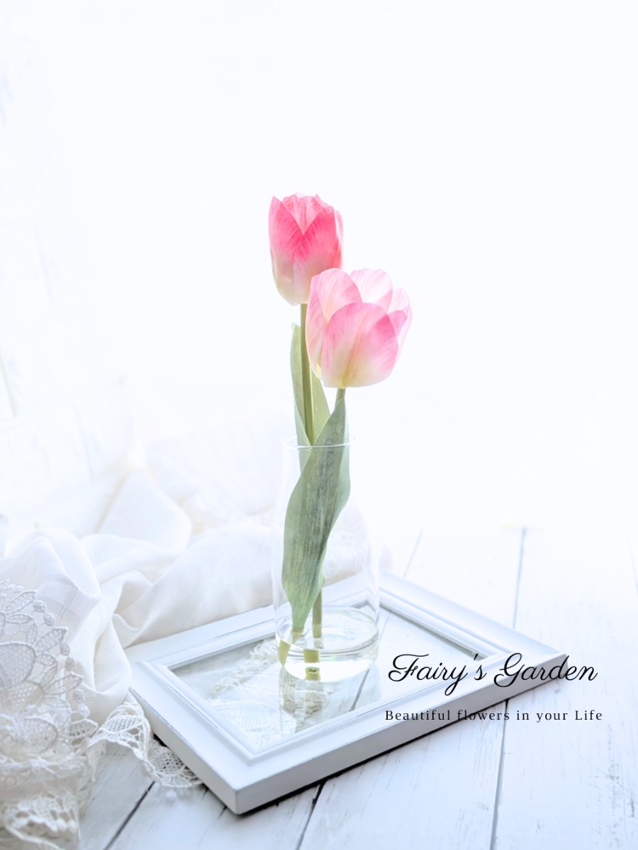 2色のピンクが可愛らしい、チューリッップのマジカルウォーターアレンジです。