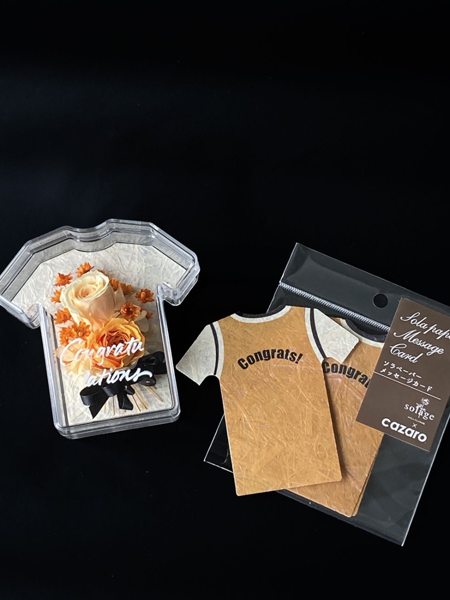Tシャツ型ケースで、記念になるお祝いアレンジ。