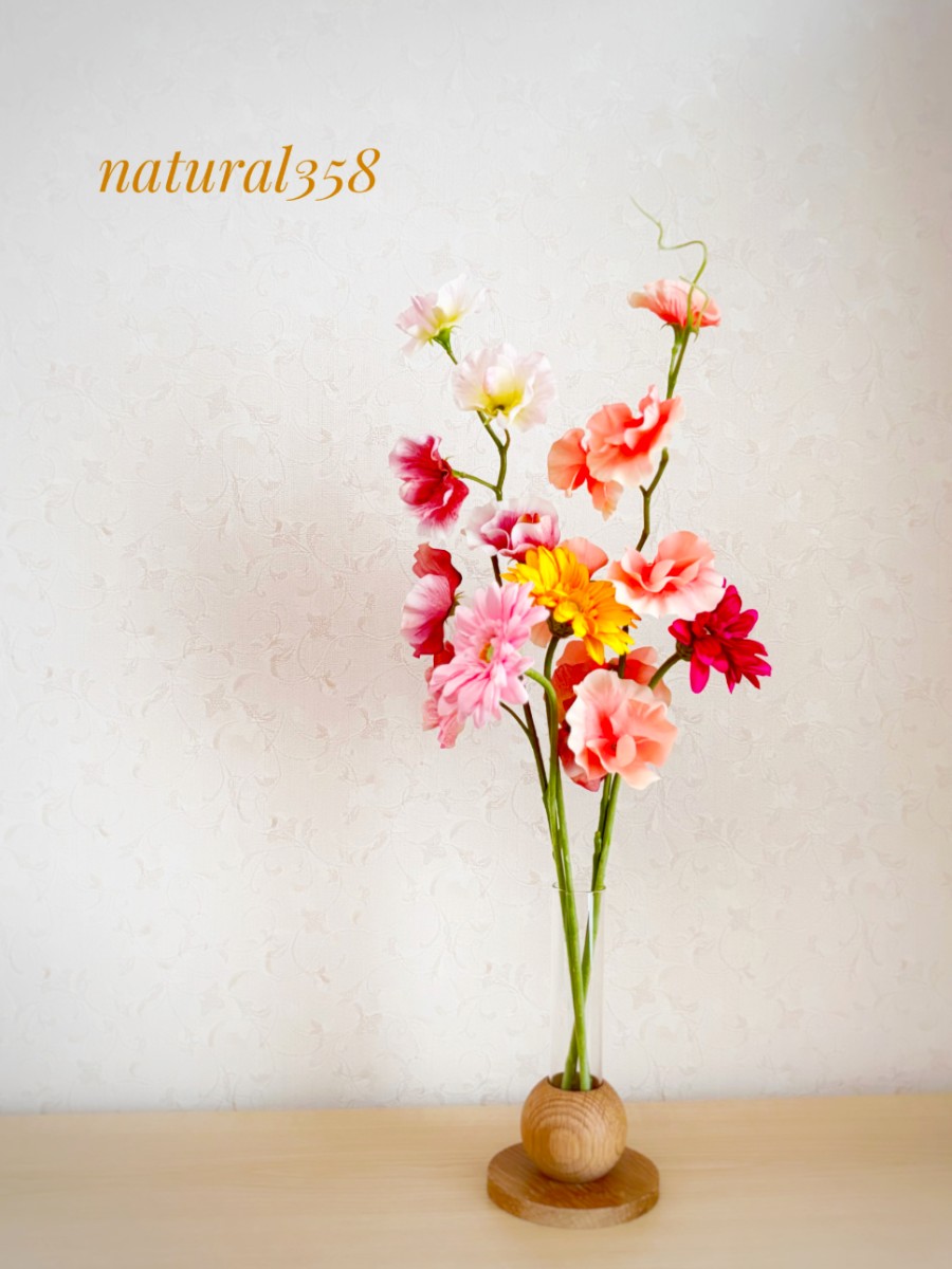 甘い香りがしそうな、アーティフィシャルフラワーの一輪挿しです。