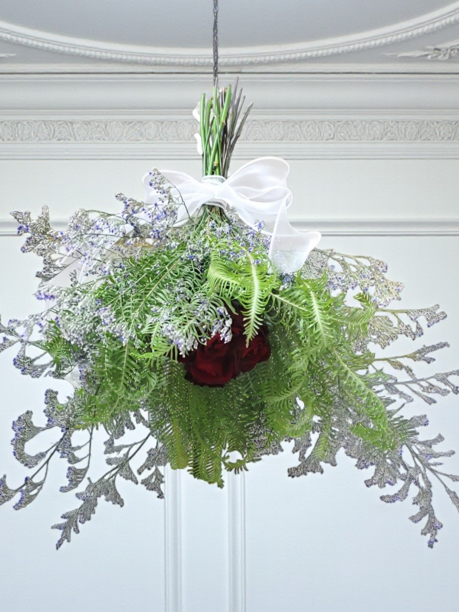 ブルーファンタジーを表面にして、アンブレラファンに赤い薔薇を包みました。幻想的なイメージを表現しました。