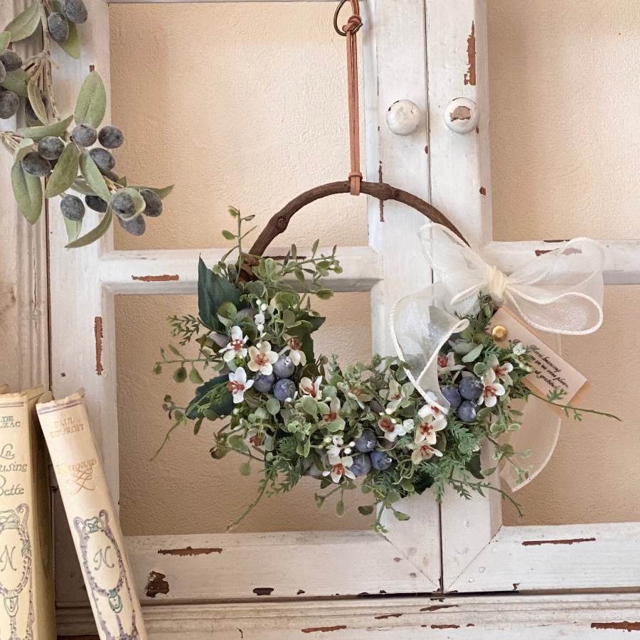 ハーフムーンタイプのラタンリースベースを使った作品です。