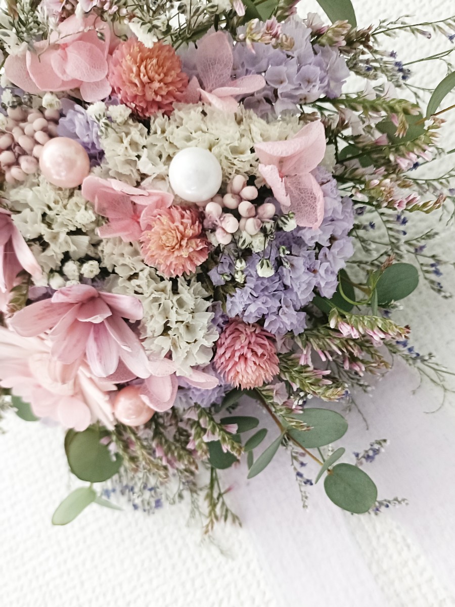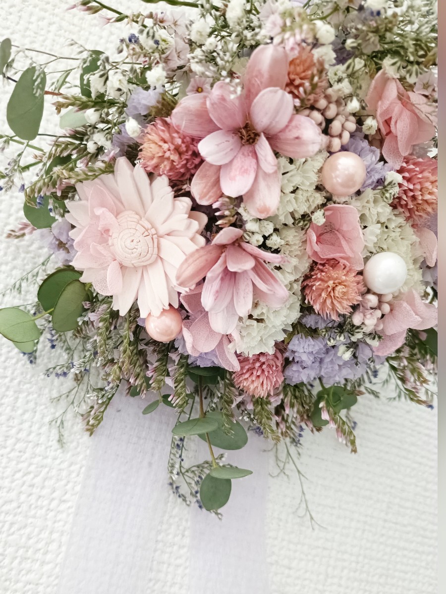 ドライフラワーやプリザーブドフラワーを使用してフラワーアレンジメント作品を作成しています。