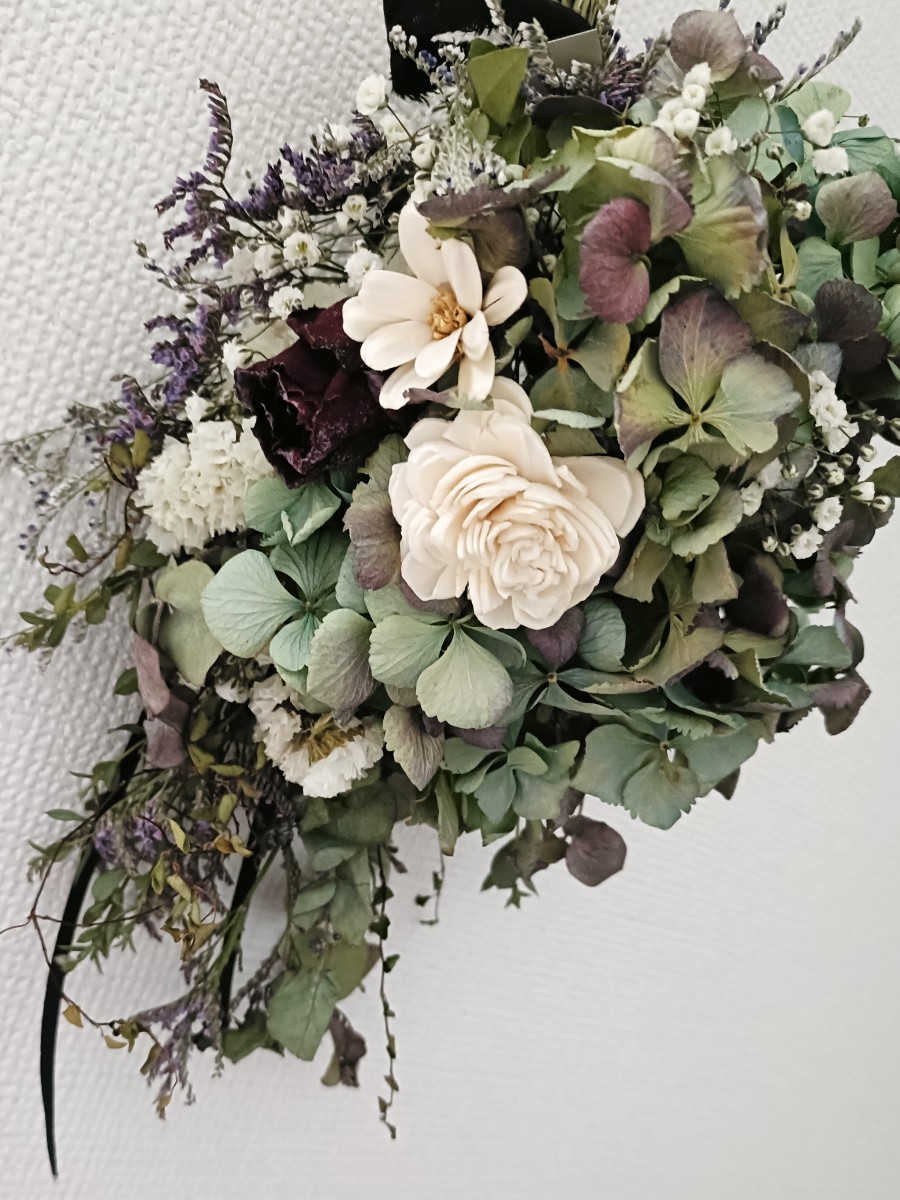 ドライフラワーやプリザーブドフラワーを使用してフラワーアレンジメント作品を作成しています。