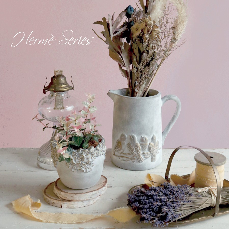 上品でノスタルジックな雰囲気のあるセメント製の鉢。