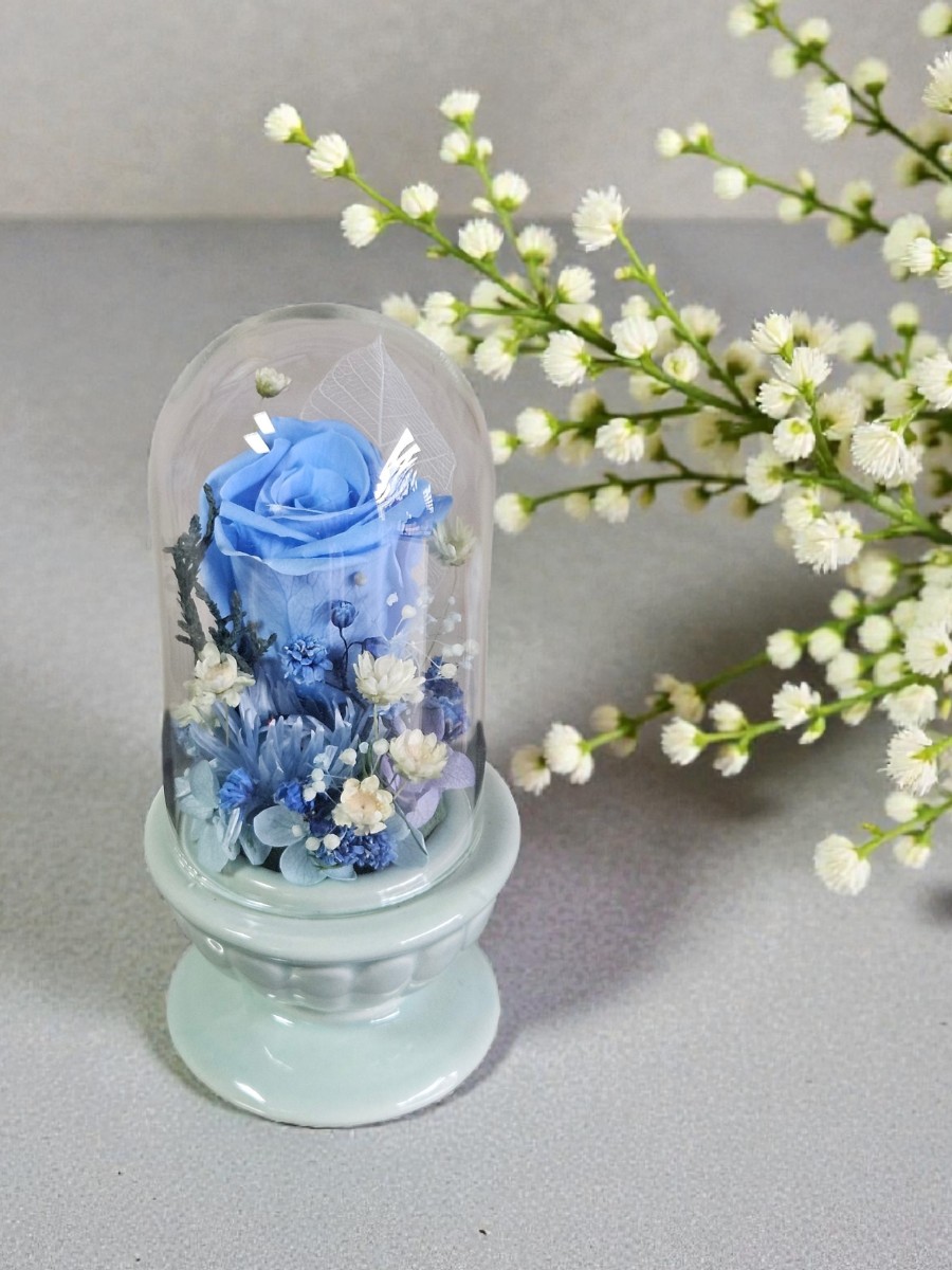 ガラスドームですので、日光に気を付けていただければお手入れも手間がかかりません。