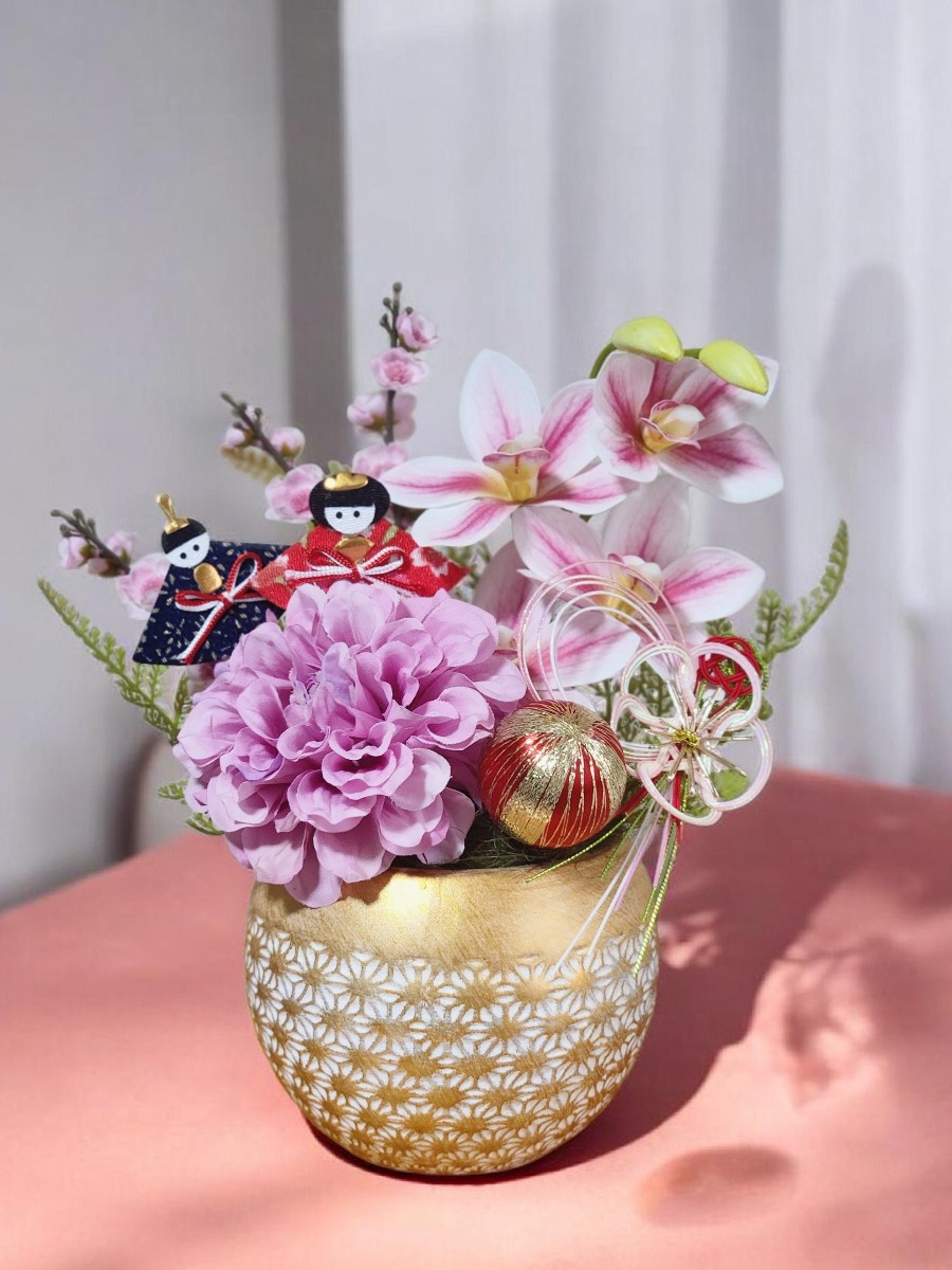 ピンク系で桃の節句らしい和風アレンジメント