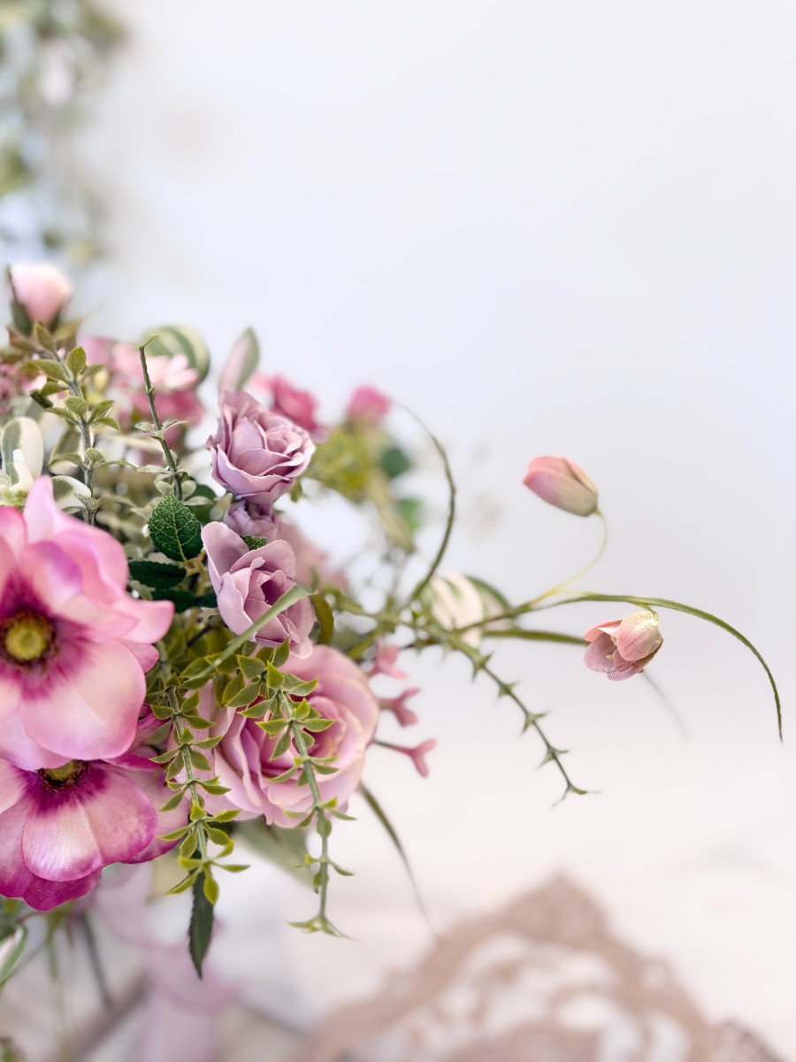 アンティーク感あるピンクパープルのお花で