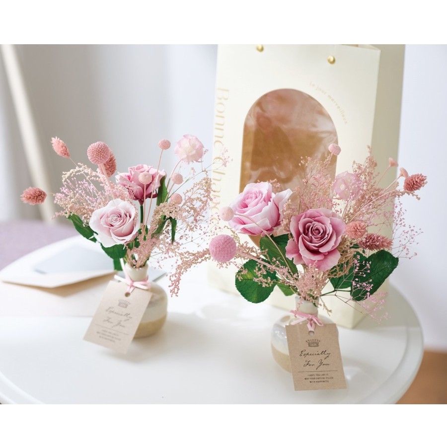 ステム(茎)を活かしたデザインで、手軽にボリューム良く、華やかに飾っていただけます。大切な方へ、心温まる上品なプリザーブド・ギフトを贈りませんか?