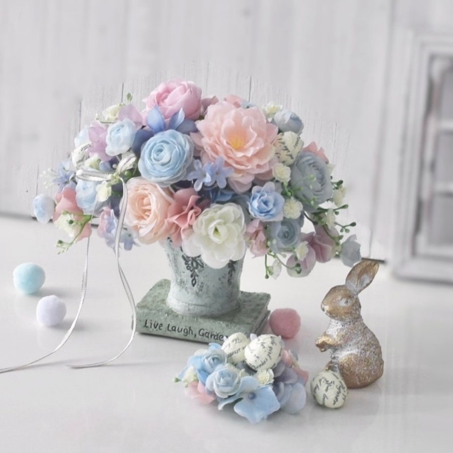 現在は、主にブライダルブーケ・リース・アレンジメントなどを制作・販売させていただいております。