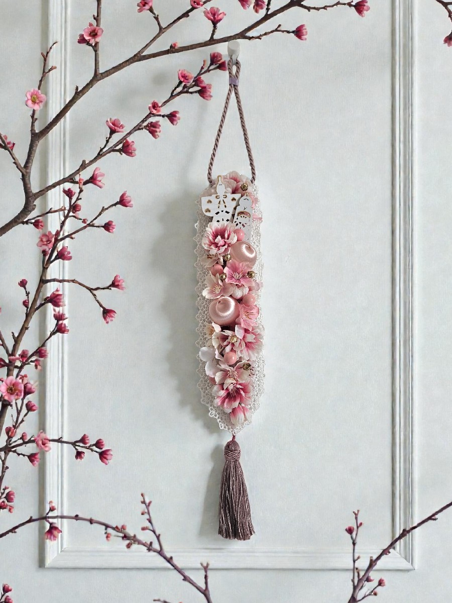 ひな祭りをイメージしたタペストリー風の壁飾りです。