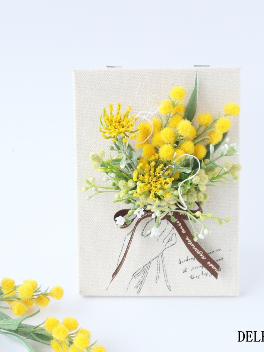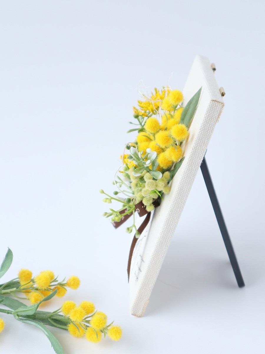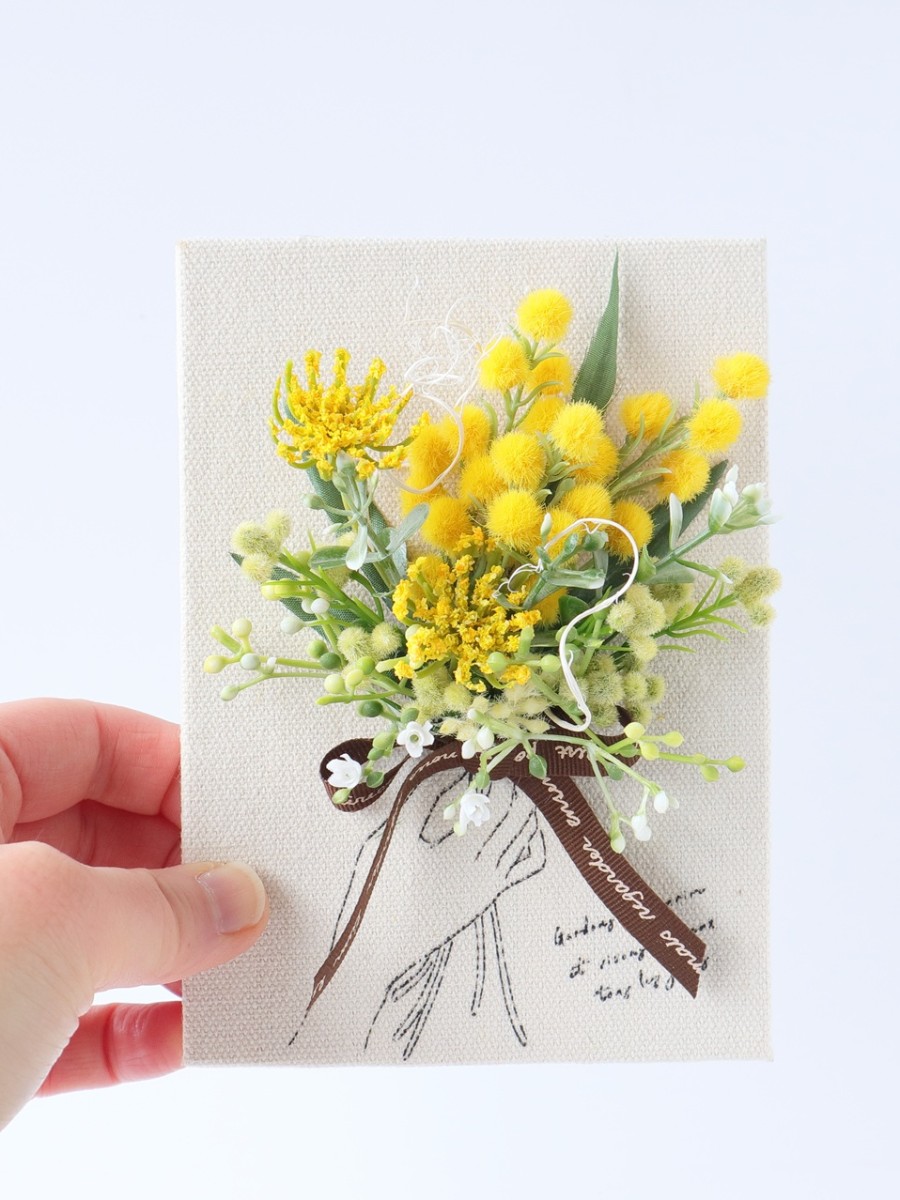 はがきサイズのミモザのキャンバスボードアレンジ!