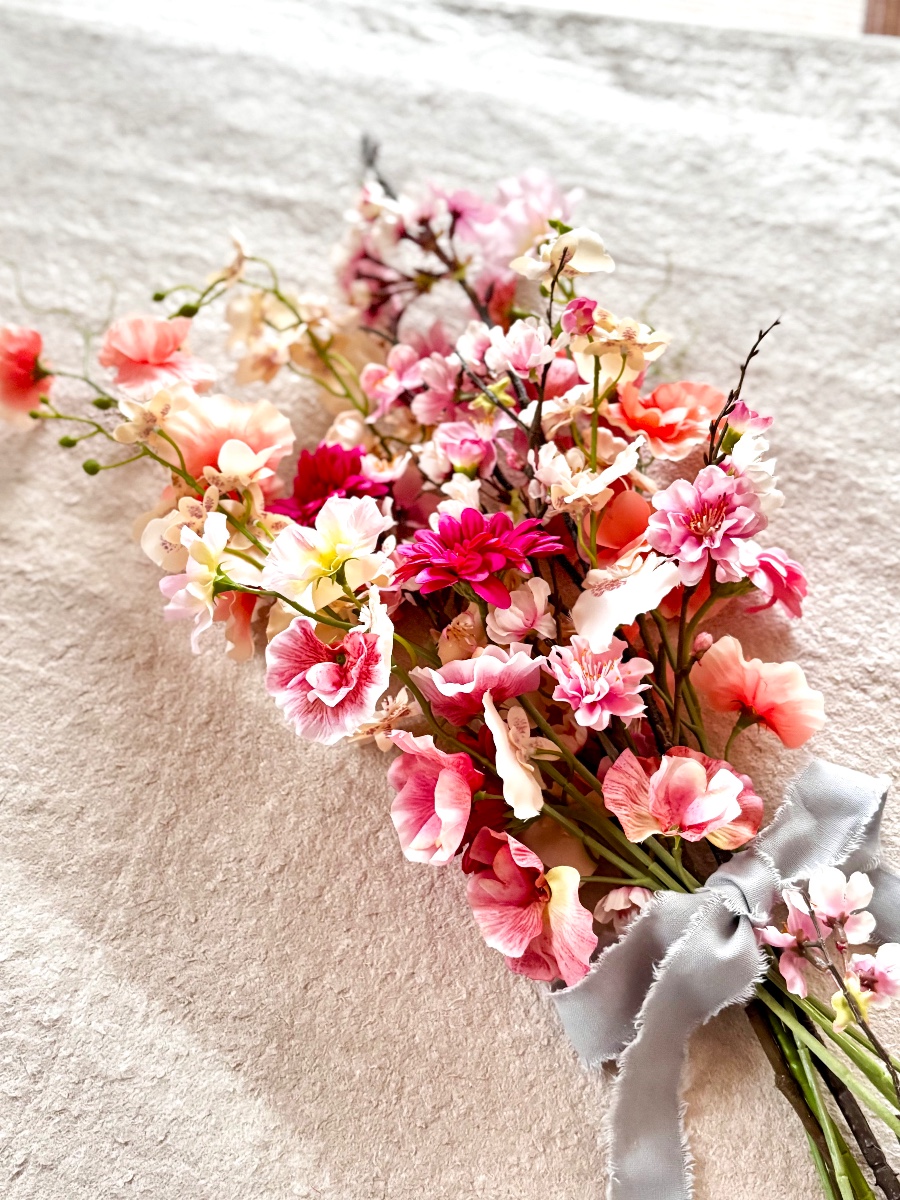 春らしくピンク色でまとめた優しい印象の花束です。