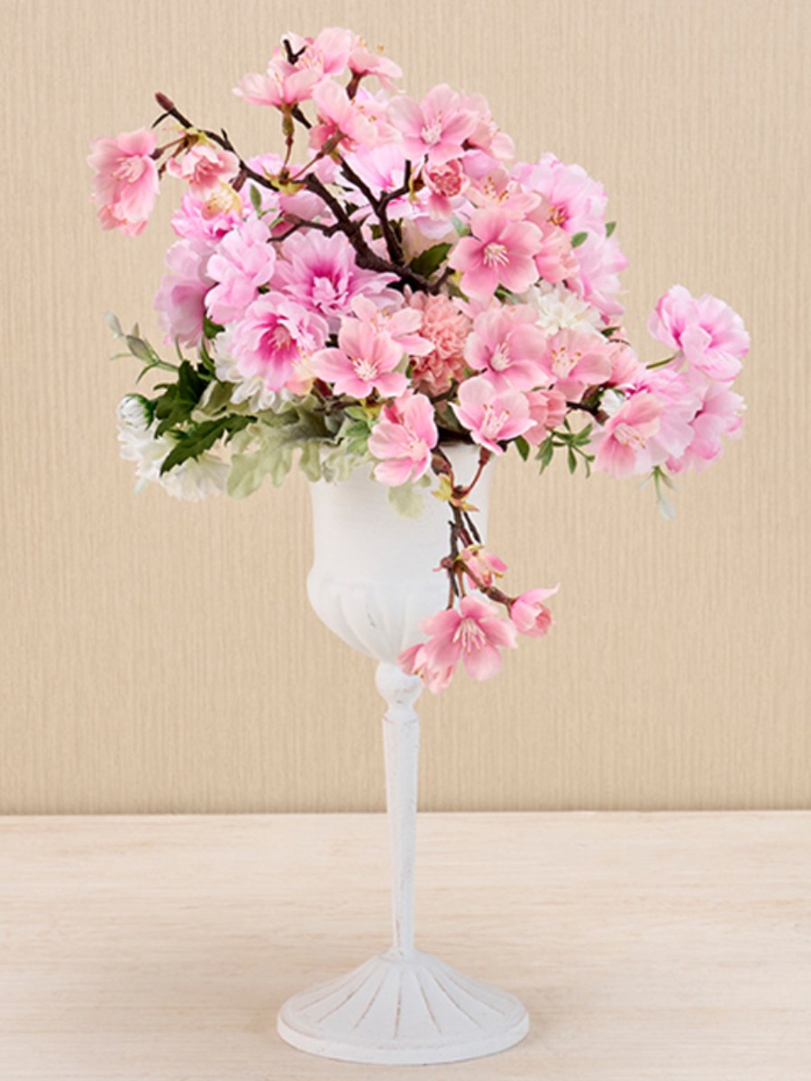 八重桜はふんわりと山桜は枝ぶりを生かして挿しています。