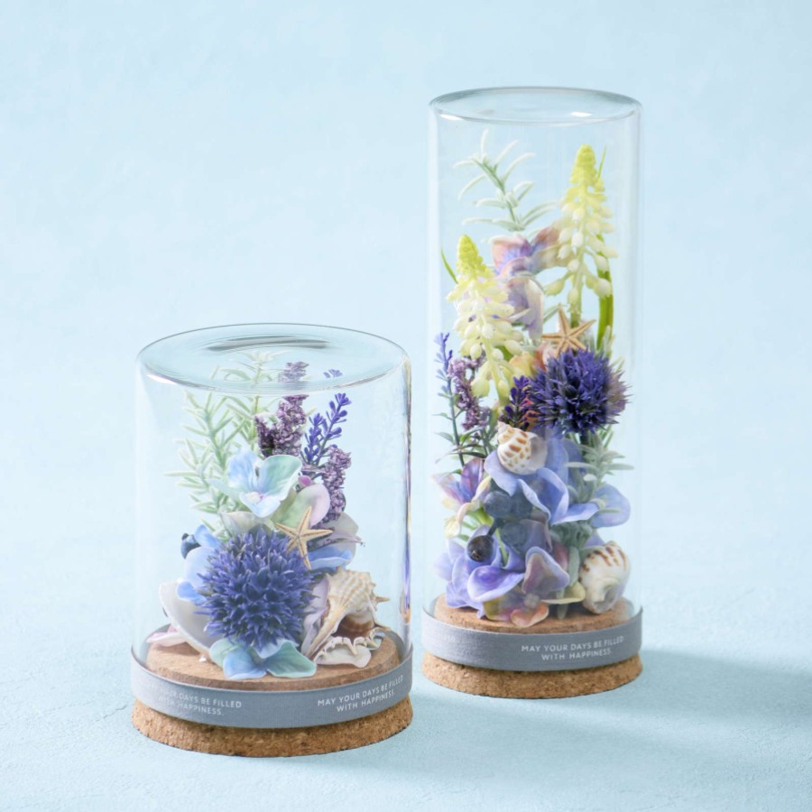 ガラスドームに閉じ込めた、爽やかなブルーの世界が印象的なフラワーアレンジメント。