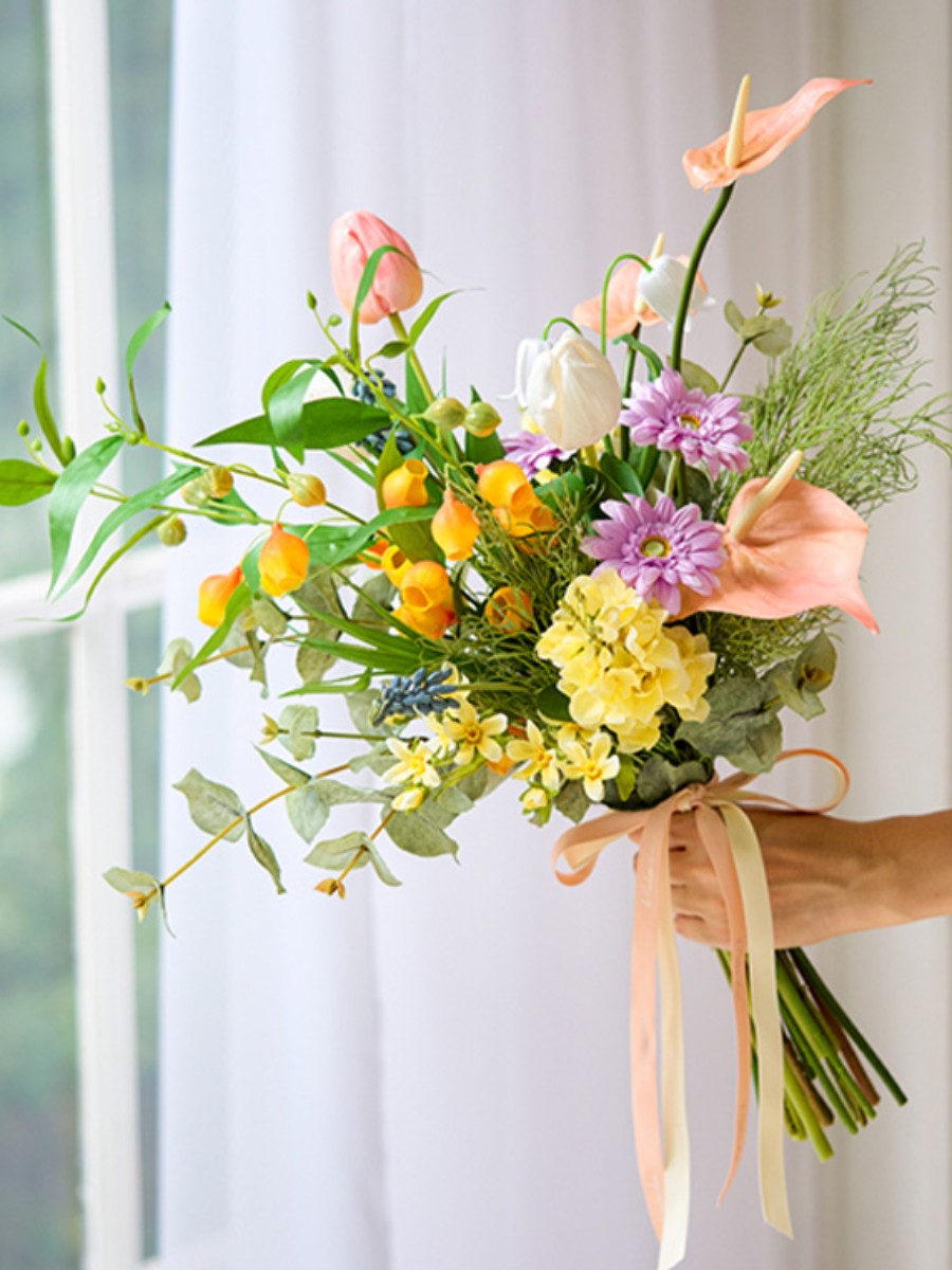 面の花は低めに、ラインの花は伸びやかに入れると空気感が生まれます。