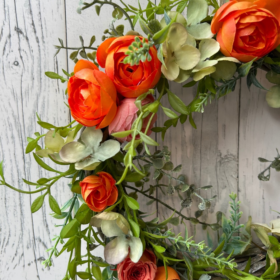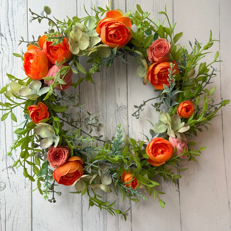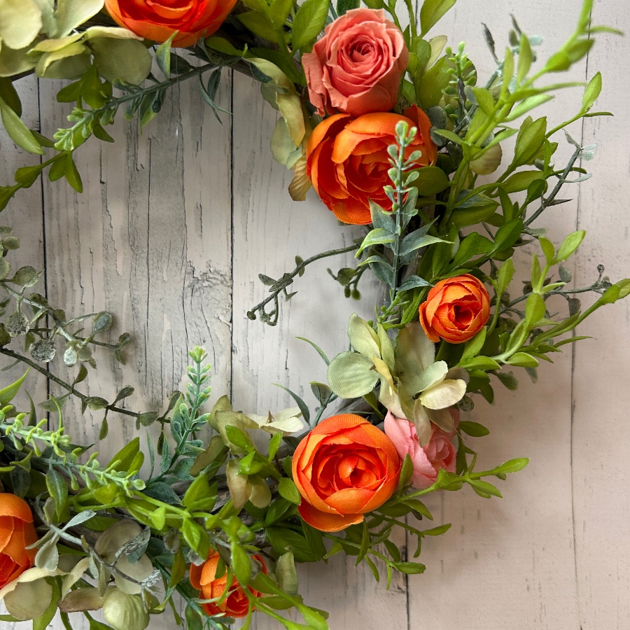ラナンキュラスを使って春らしい明るい色のリースを作りました。