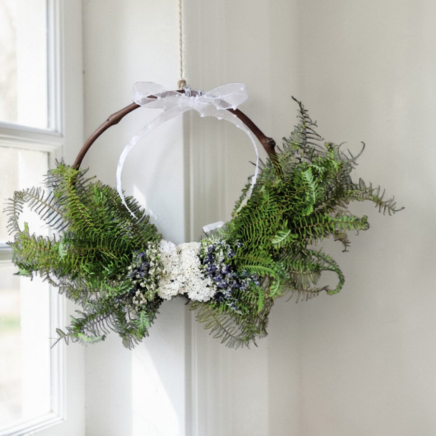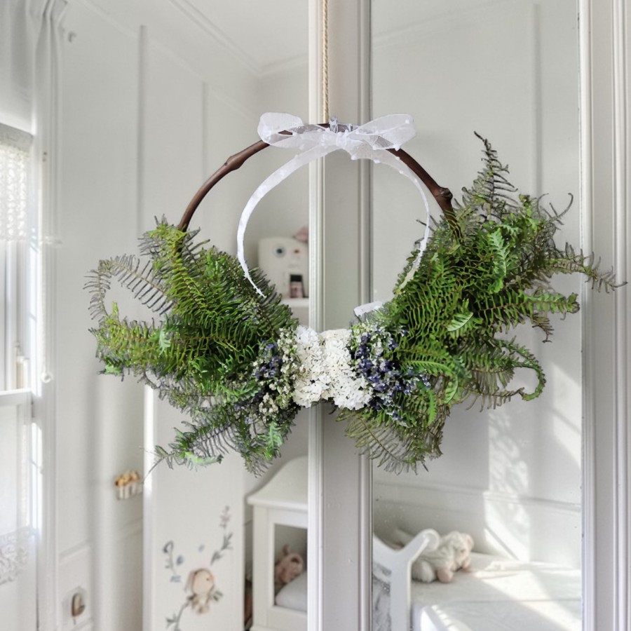 白いスターチスを中心に、お花で作ったバタフライリースです。
