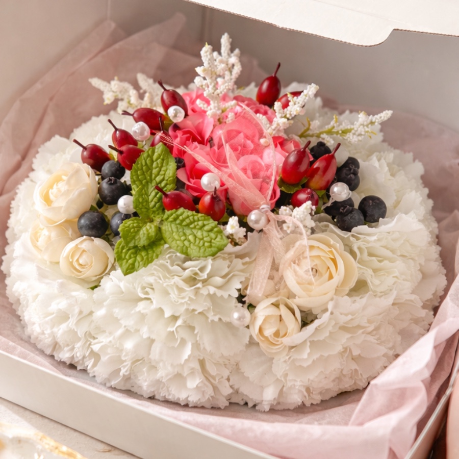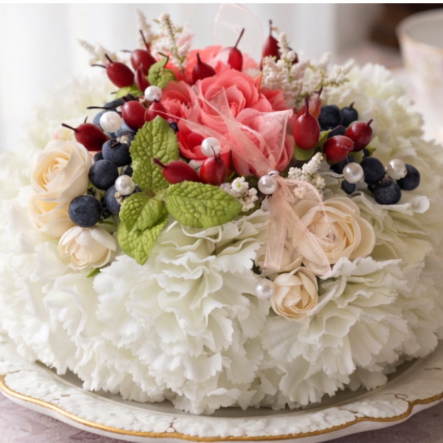 真っ白いカーネーションは、ふわふわの生クリームです。