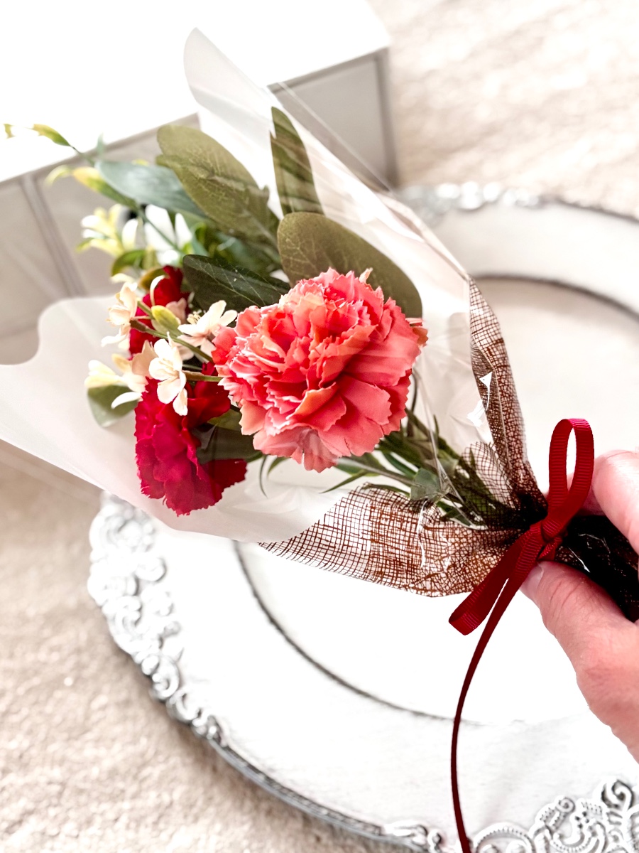 母の日にさりげなく贈れる花束です。