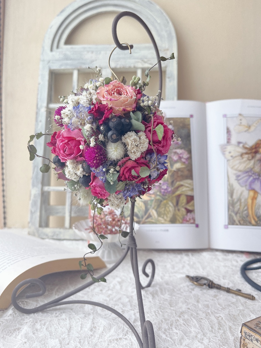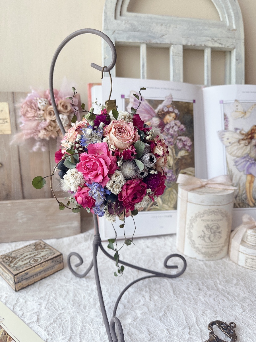 ドライフラワーのフラワーボールアレンジです☺︎