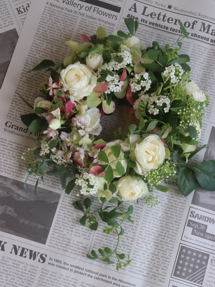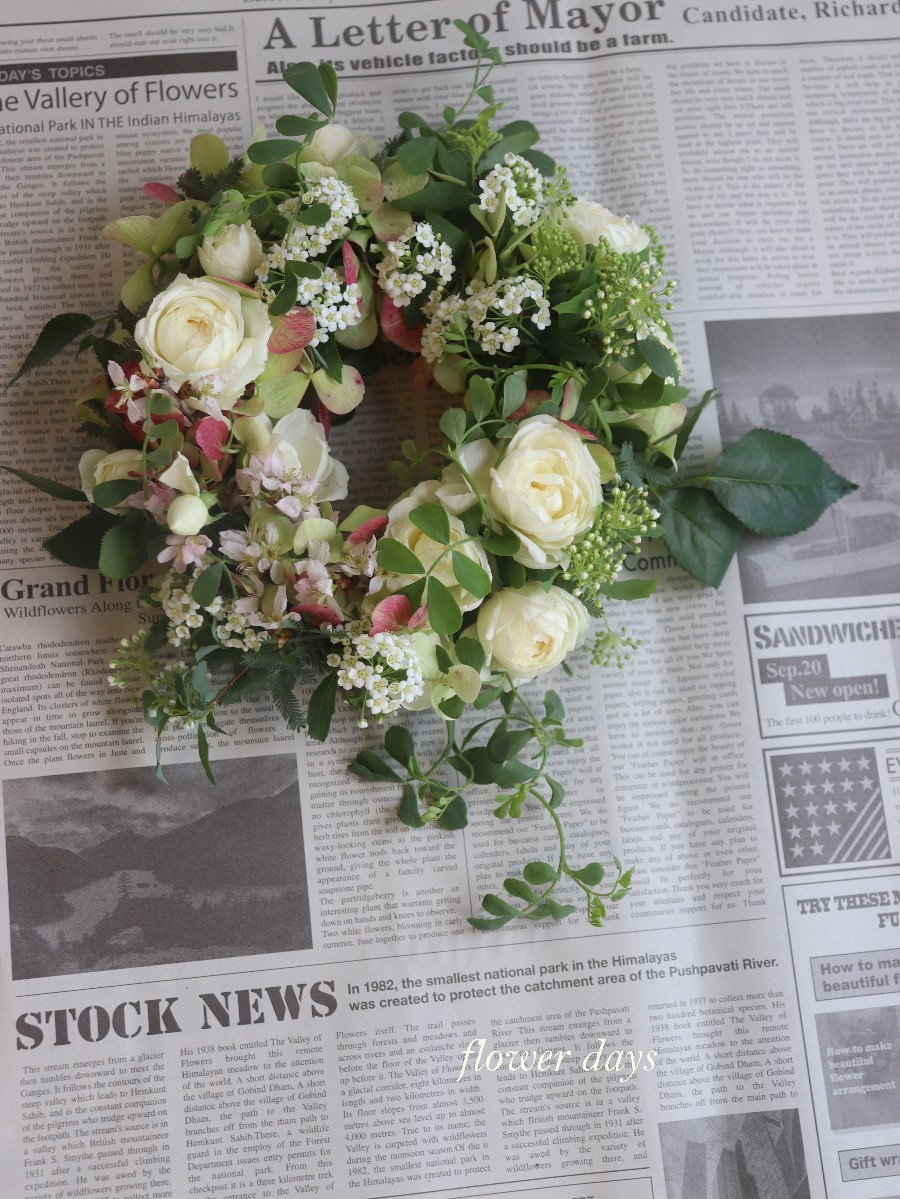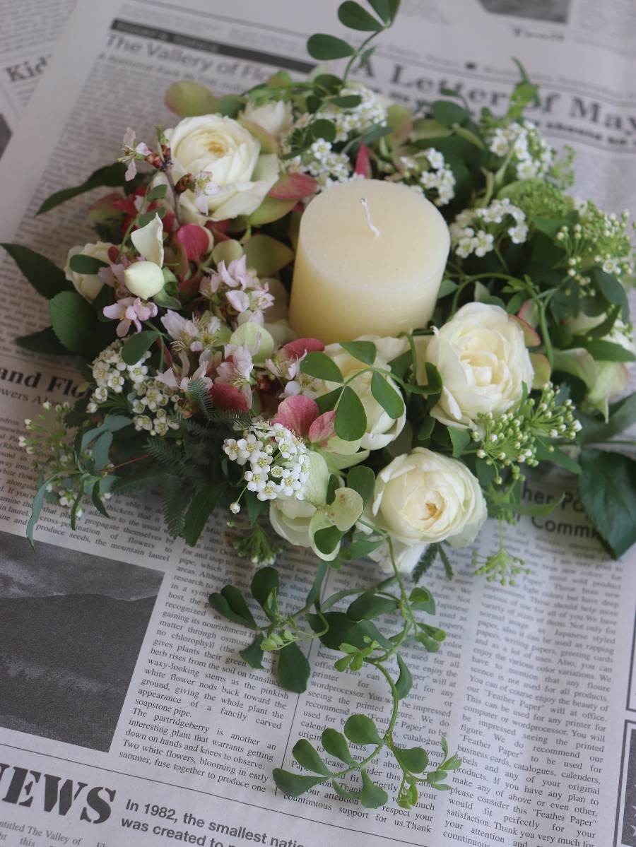 ナチュラルなグリーンたっぷりのテーブルリースです