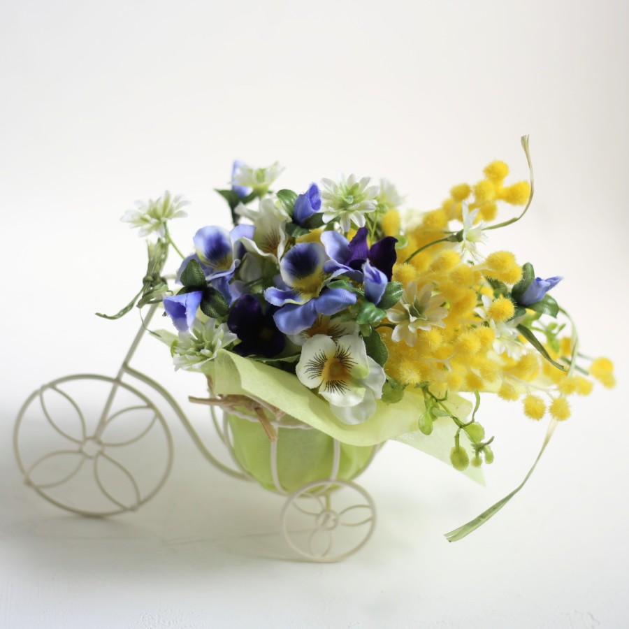 ミモザに相性ピッタリのビオラ(パンジー)を合わせた春色アレンジです。