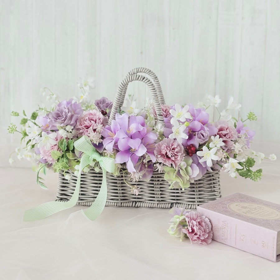 華やかさと優しさが詰まったバスケットアレンジ。