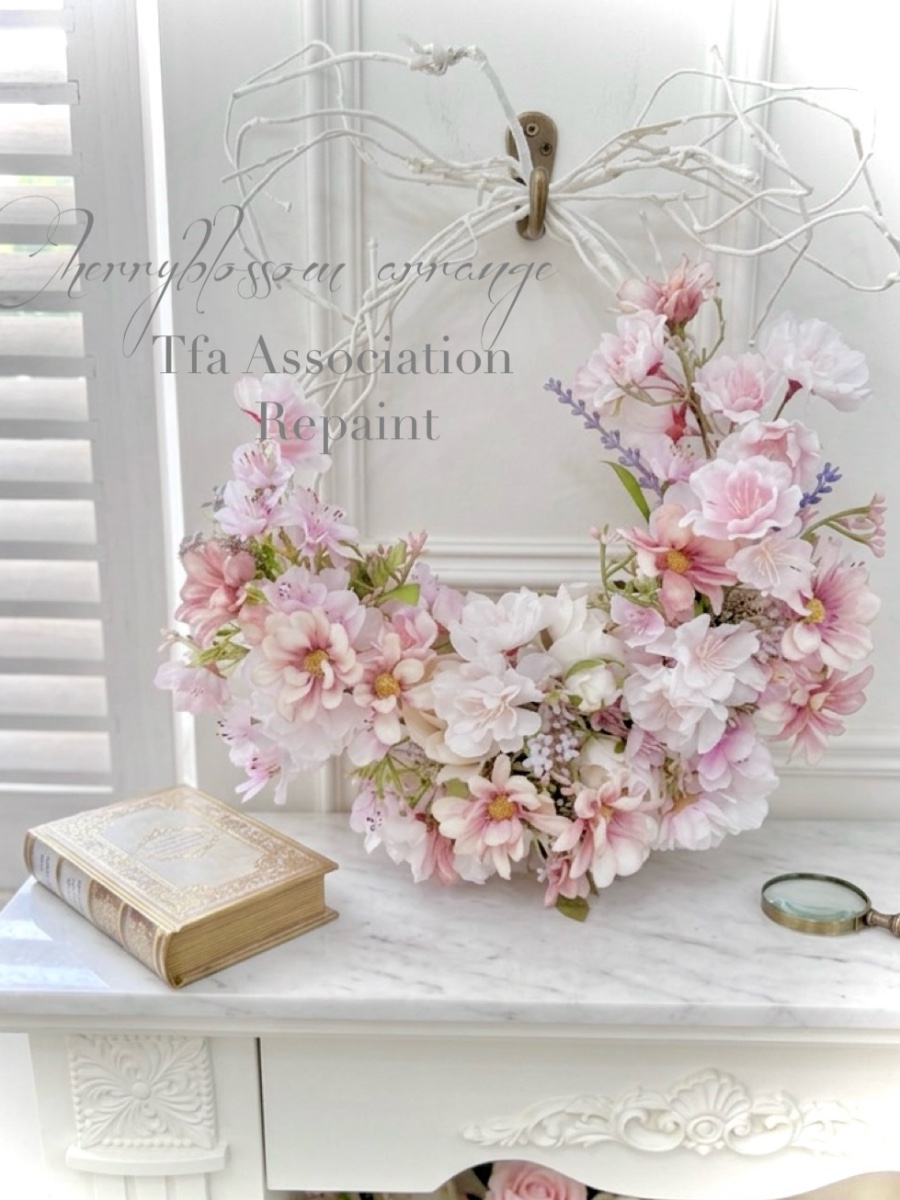 色んな色合いの桜を入れることで、贅沢な桜リースに