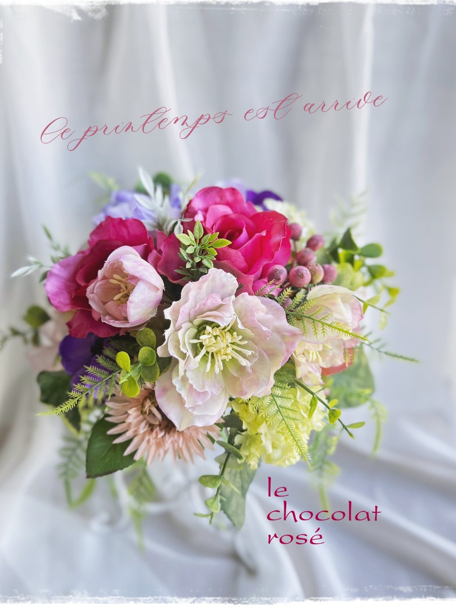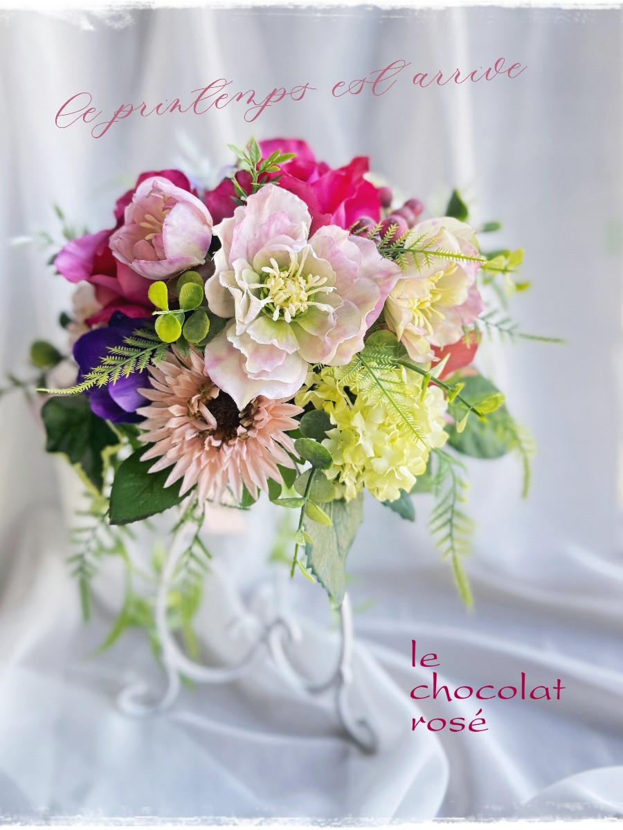沢山のグリーンと明るいカラーリングの花たちが春にぴったりで