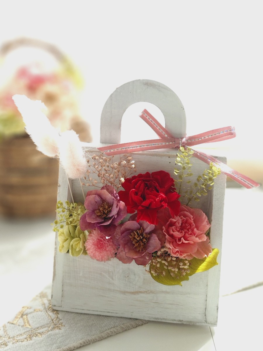 絵本の中で森の動物達がお花を摘んでショッパーズバッグに入れて楽しく駆け回っているようなとっても楽しくて可愛いアレンジになりました
