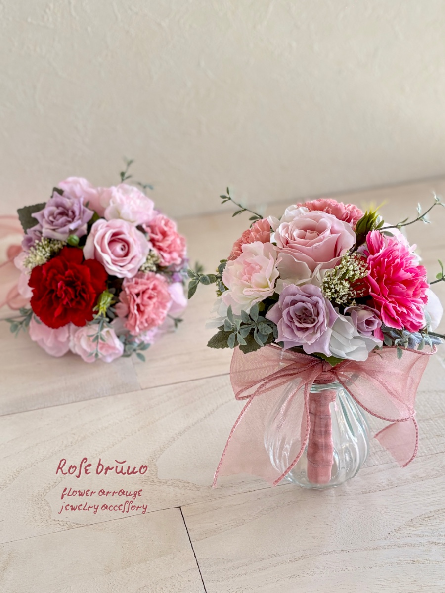 こちらは、まるで生花のような々しさと柔らかな質感を持つ「アーティフィシャルフラワー」でお作りしています