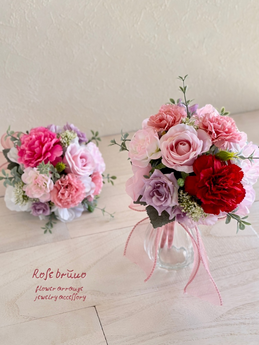 こちらは、まるで生花のような々しさと柔らかな質感を持つ「アーティフィシャルフラワー」でお作りしています