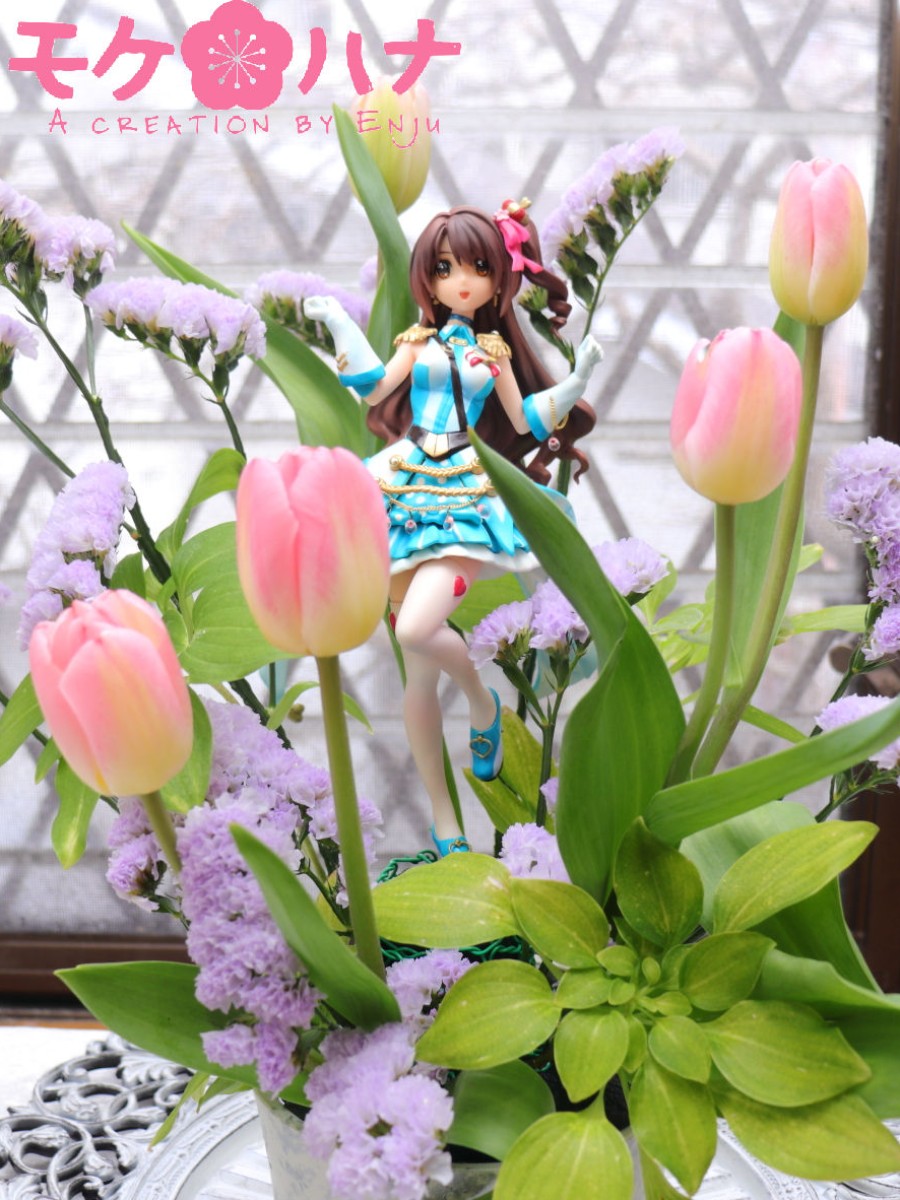 春の花材に躍動感のある島村卯月のフィギュアを合わせてさわやかな雰囲気を狙いました。