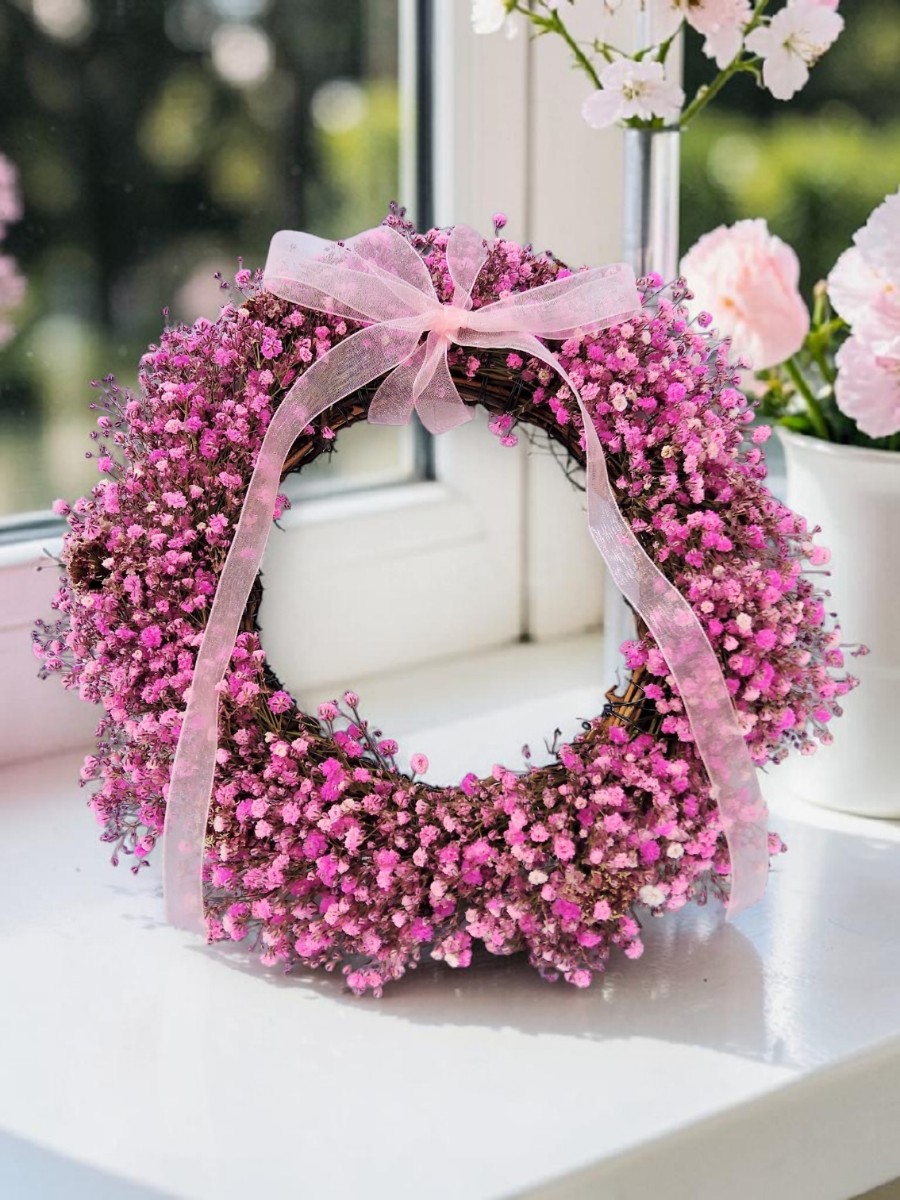 かすみ草とスカビオサの生花ドライフラワーリースです。可愛い魅力的なリースに仕上がりました。