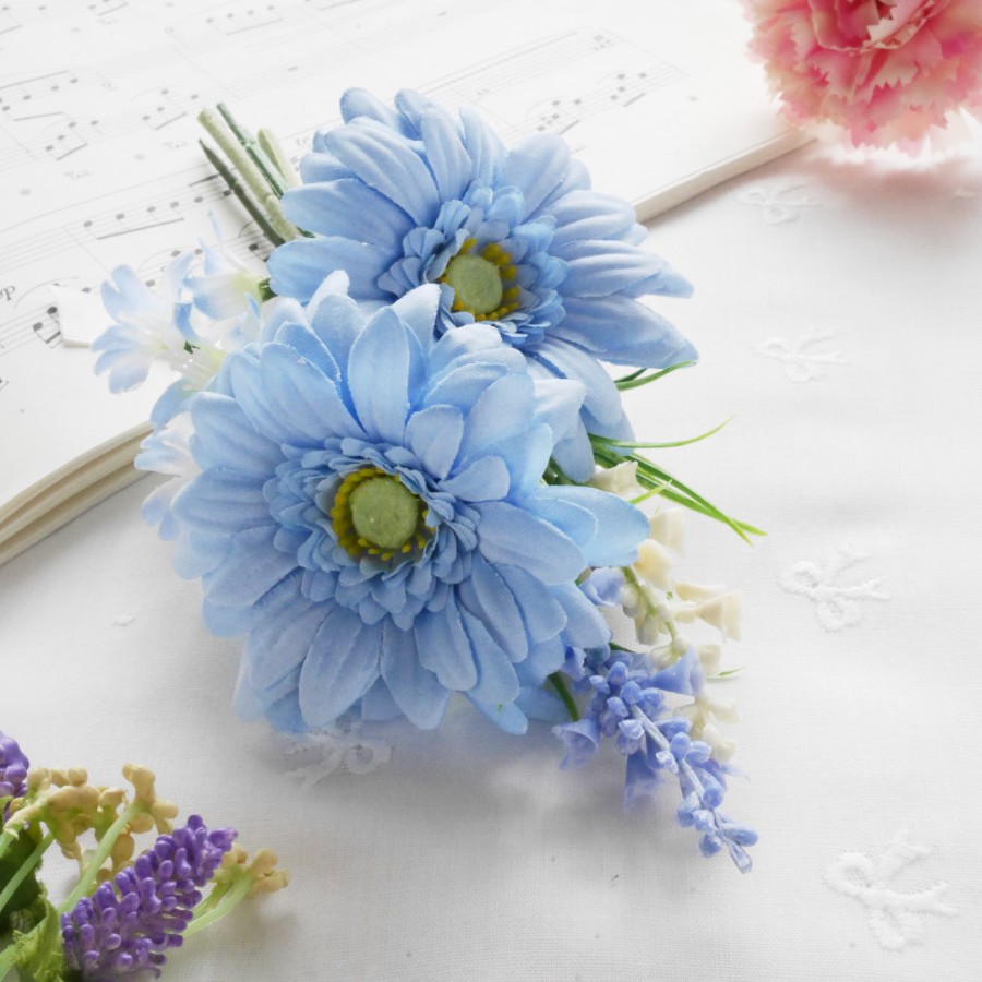 ツヤ感のきれいなブルーのガーベラを2輪