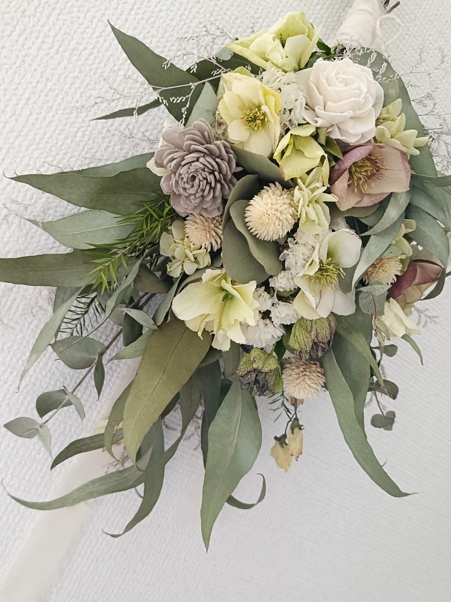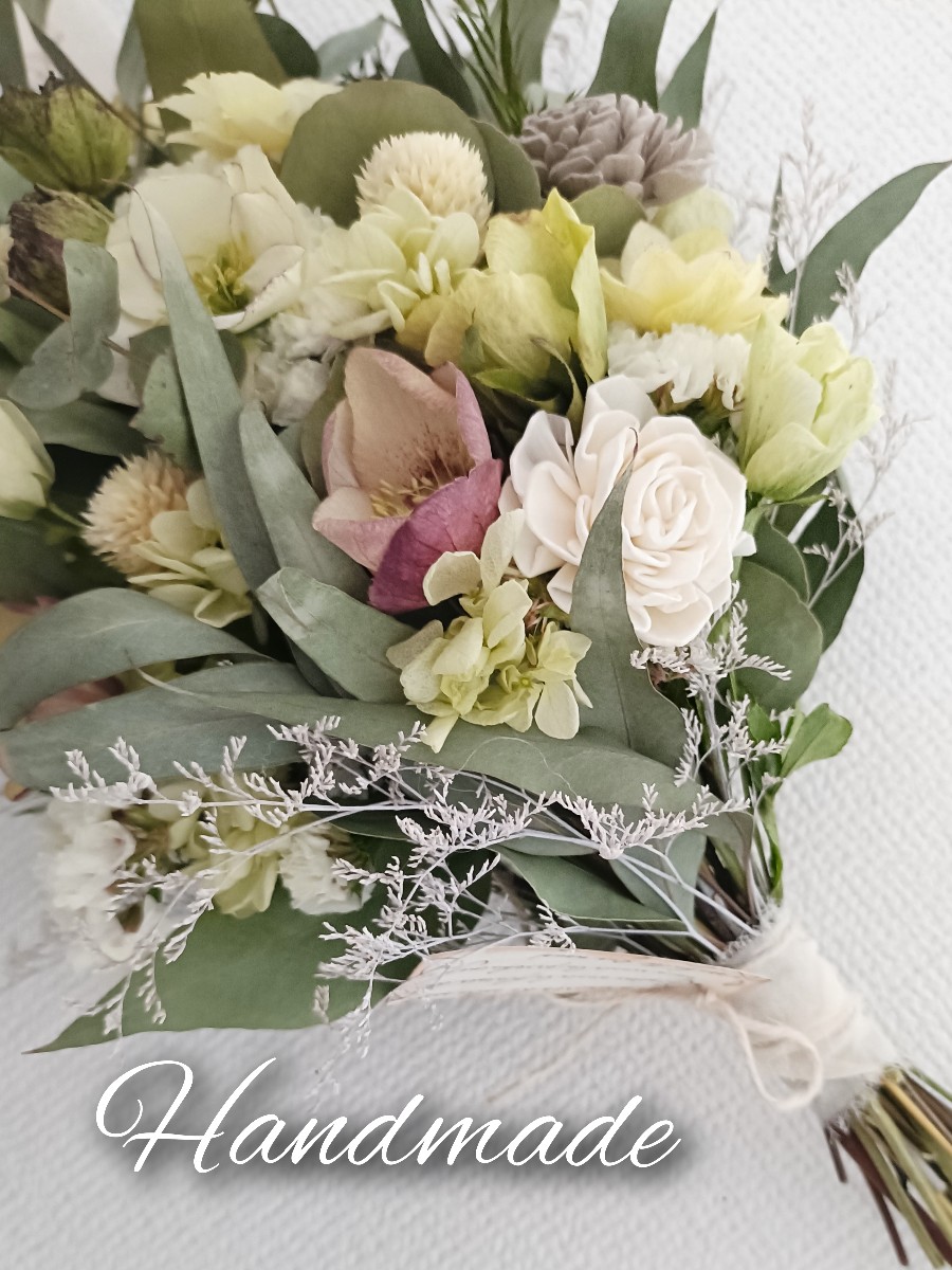 ドライフラワーやプリザーブドフラワーを使用してフラワーアレンジメント作品を作成しています。