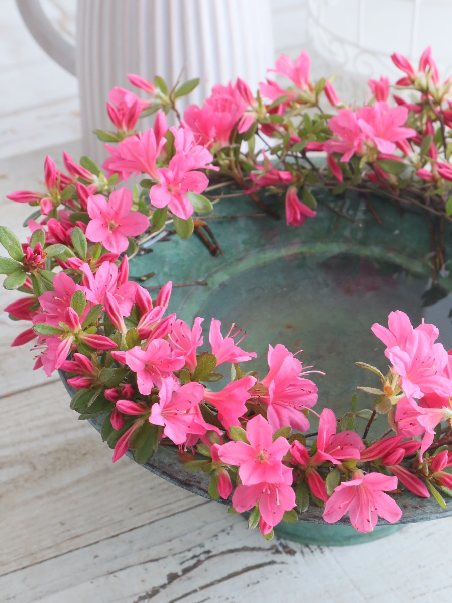 使用花材は、紅切ツツジ(ピンク)