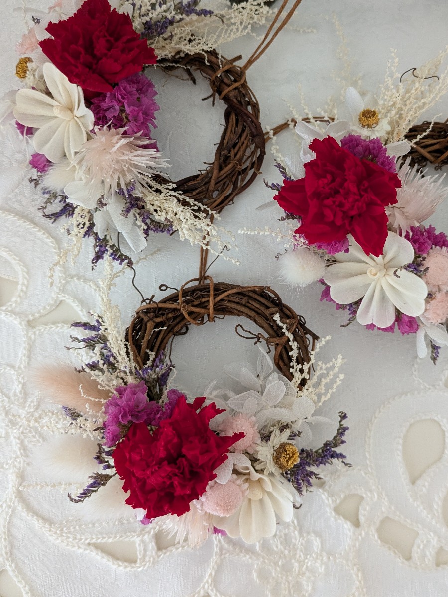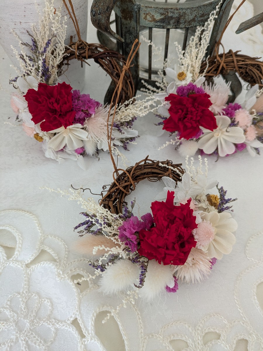 10cmほどの小さなリースは、お好きな場所に飾れます。
