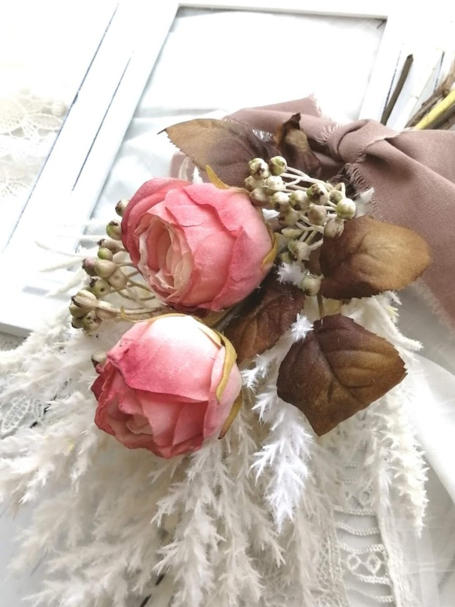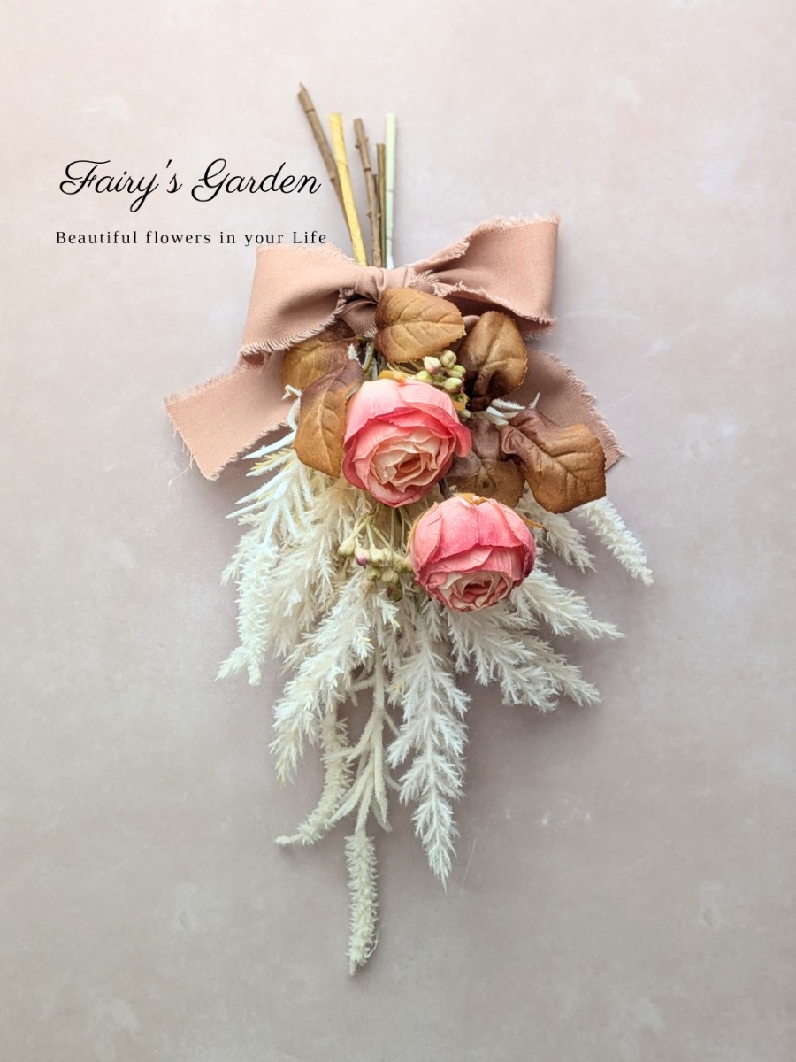 まるで本物のドライフラワーな優しい印象のスワッグです。