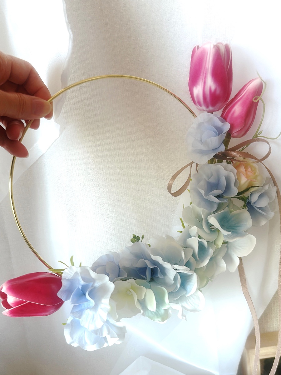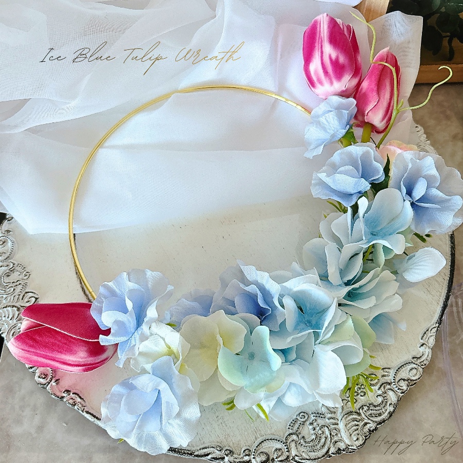 心が洗われるような爽やかなアイスブルーのスイートピーと紫陽花